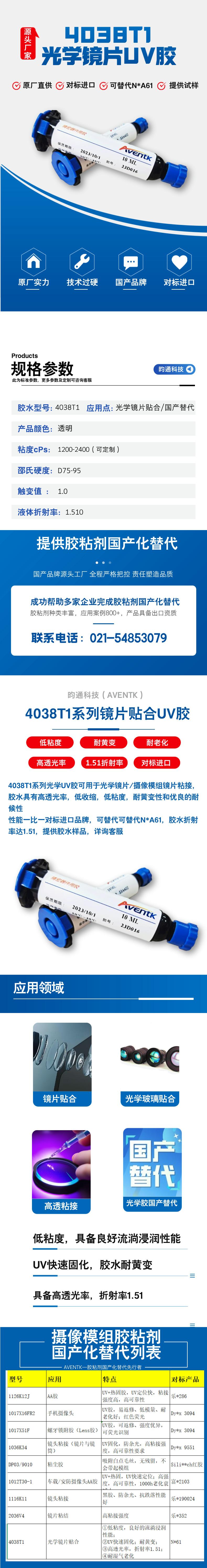 4038T1鏡片貼合UV膠,替代N*61