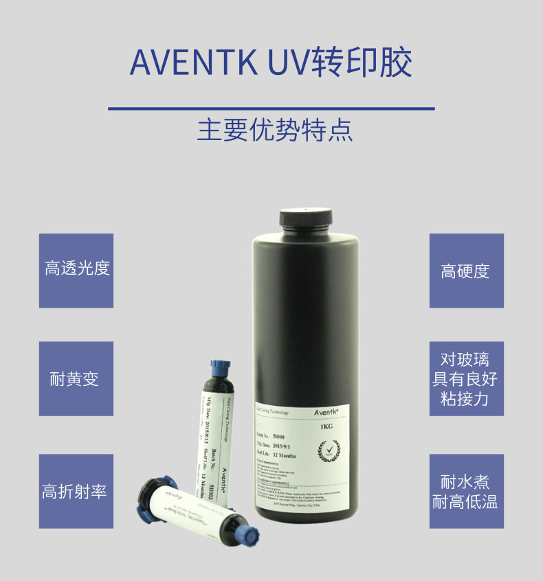 AVENTK UV轉印膠對玻璃具有較好的粘接性,耐水煮及耐高低溫性能好。能夠滿(mǎn)足環(huán)保、節能和高效的印刷要求,可以在玻璃表面制作出精密紋路、激光紋理、金屬紋理、磨砂效果、浮雕效果,主要用于手機后蓋的紋路裝飾、3D玻璃轉印等應用。目前購買(mǎi)使用UV轉印膠的客戶(hù)越來(lái)也多,為了讓大家購買(mǎi)UV轉印膠后,能夠獲得更好的膠水使用效果,AVENTK在此總結了一些UV轉印膠的使用注意事項,希望對您有所幫助!