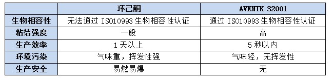 醫用UV膠水AVENTK 32001與環(huán)己酮對比