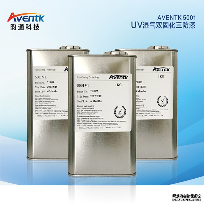 UV型三防漆能否解決這些問(wèn)題呢?AVENTK UV三防漆采用UV和濕氣雙重固化方式,100%固含量無(wú)溶劑揮發(fā)。能對陰影區域進(jìn)行二次的濕氣固化,另外還可添加藍色的熒光劑,方便直接檢測。AVENTK UV三防漆相比溶劑型三防漆,能夠解決成本高、周期長(cháng)等問(wèn)題,在穩定性方面,AVENTK經(jīng)過(guò)了嚴格的測試并以通過(guò)測試的配方進(jìn)行量產(chǎn)。