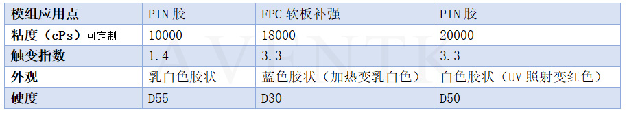 AVENTK 1017X31C系列是用于攝像頭模組FPC/PIN的丙烯酸體系膠水,可通過(guò)UV快速固化,并且達到攝像頭模組軟板補強或封PIN所需的粘接力。